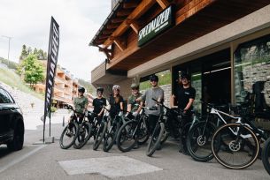 Riders meet at Specialized Crans-Montana for a quick check-in, equipment adjustment, and day briefing with their coach.